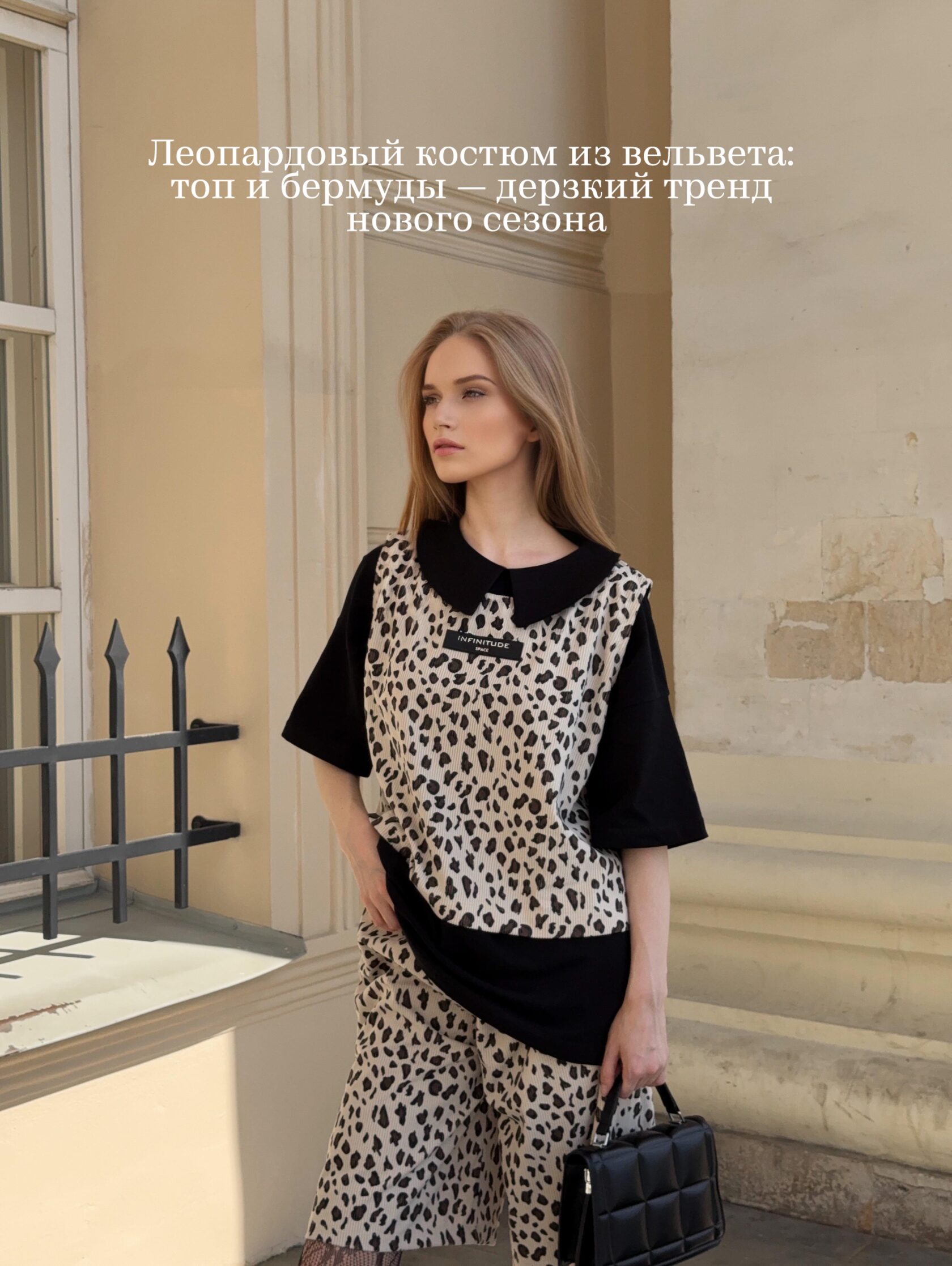 Топ и бермуды из вельвета в дерзком леопардовом принте - комбо, которое не нуждается в представлении
