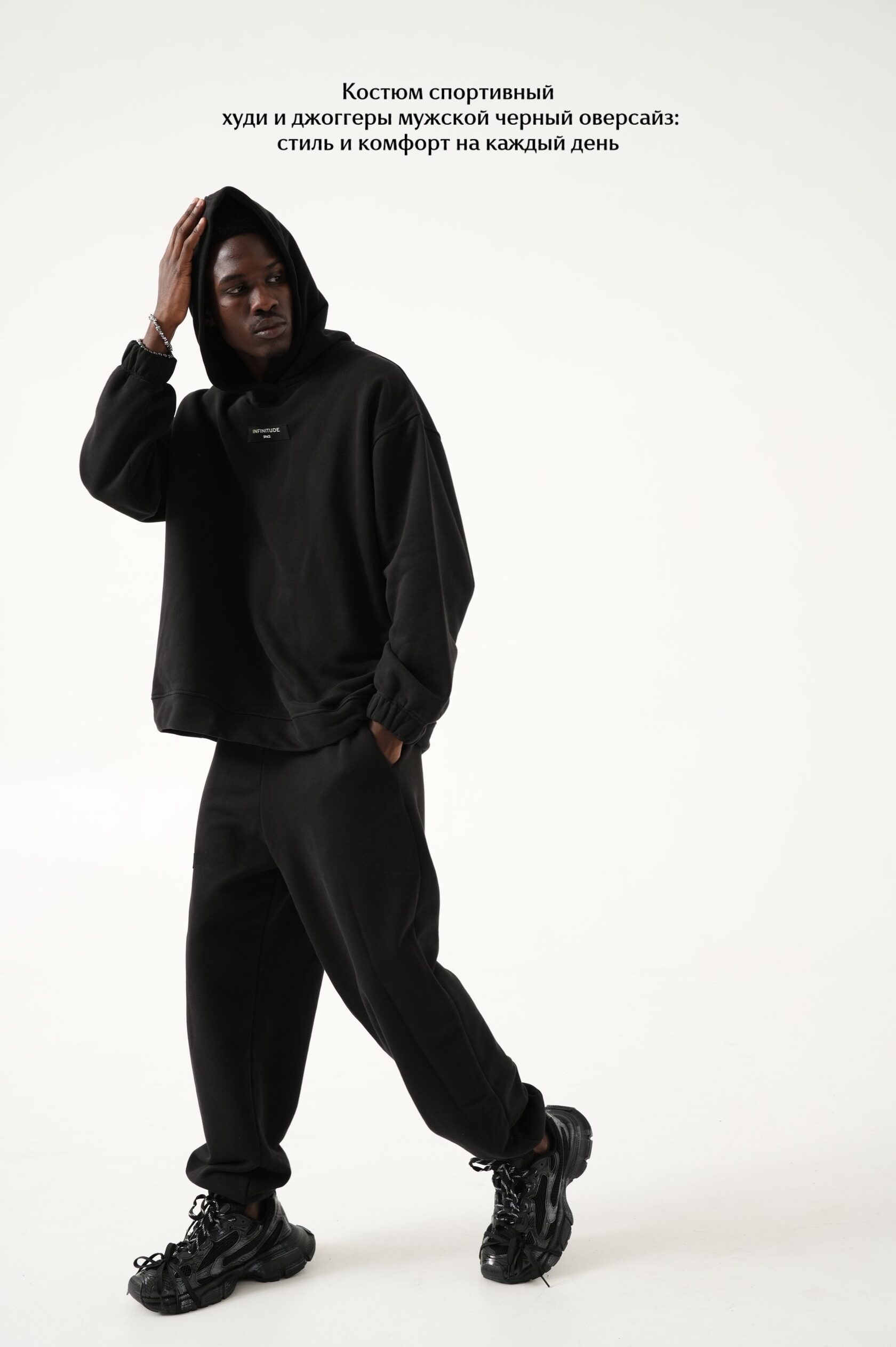 Благодаря универсальности, костюм спортивный худи и джоггеры мужской черный оверсайз впишется в любой гардероб.