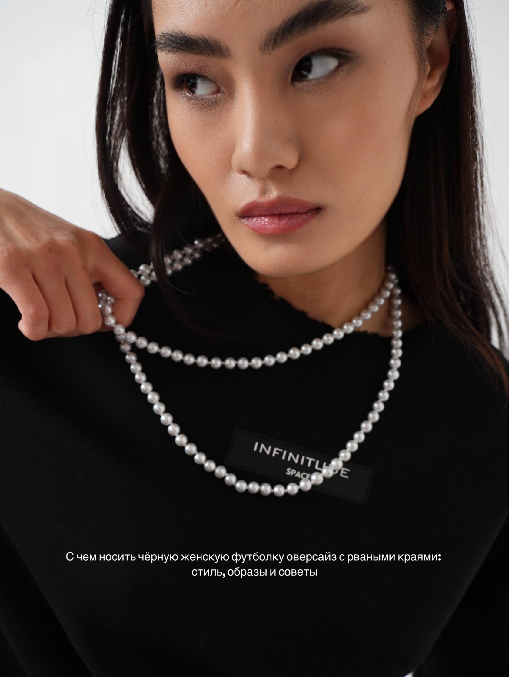 С чем носить чёрную женскую футболку оверсайз с рваными краями
